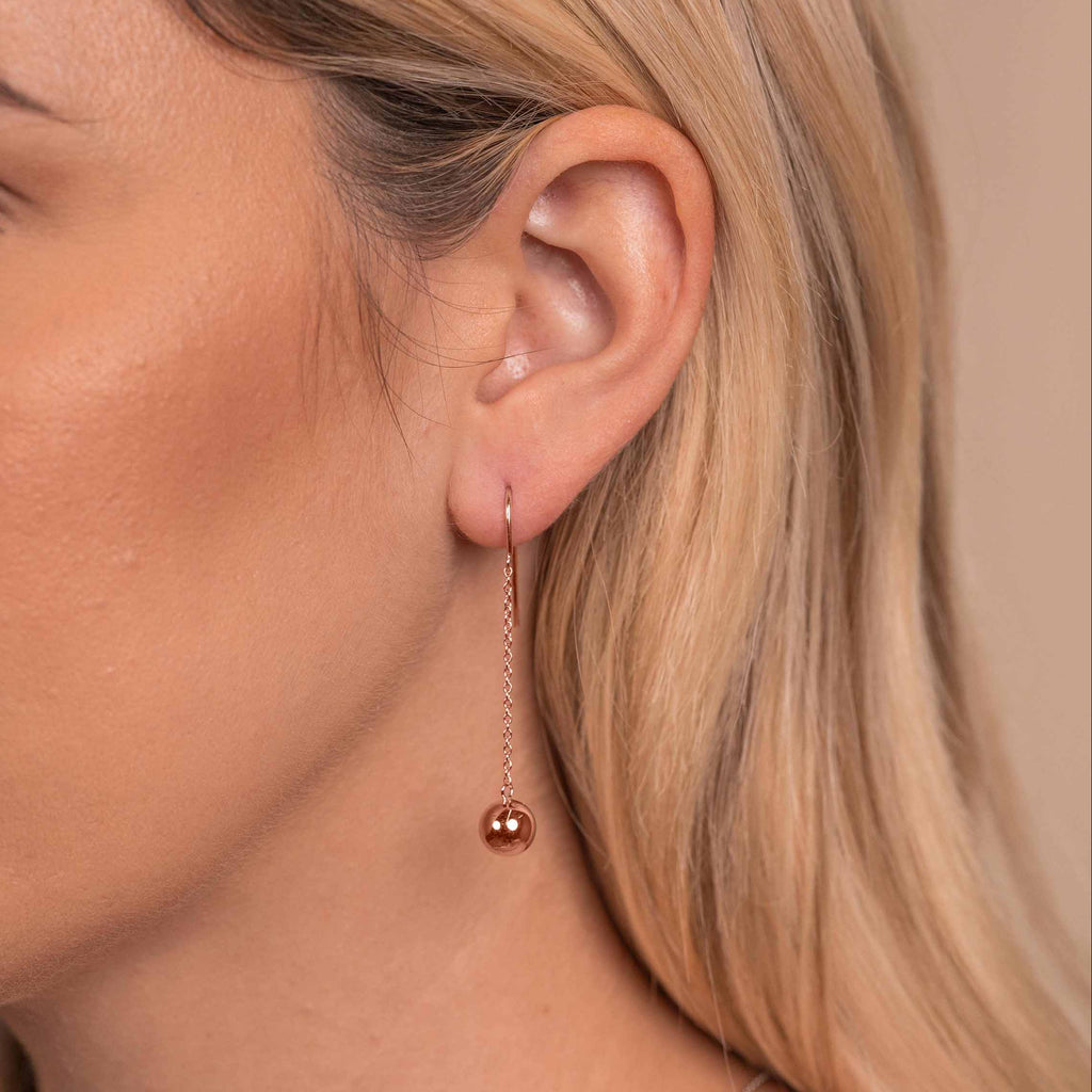 The Ball Dangle Bridal Earrings, our first foray into fabulous dangly delights, and mark our words, there's plenty more where that came from! These eye-catchers feature a robust 925 sterling silver sphere elegantly hanging from a radiant, dainty chain.