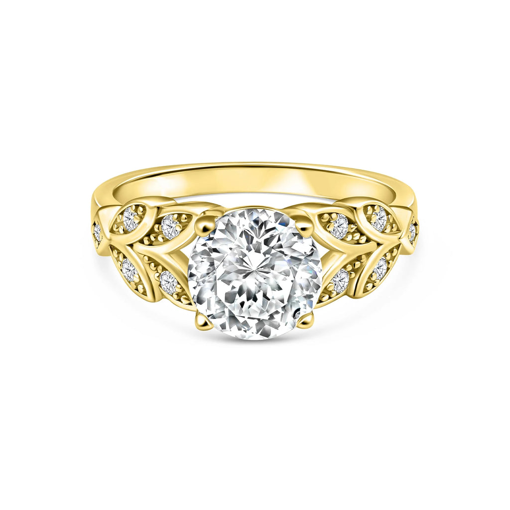 Unveil sophistication with the 2 Carat Leaf Engagement Ring — an unconventional engagement ring that effortlessly marries simplicity and charm. Boasting a brilliant 2 carat conflict-free simulated diamond at its core, this ring dazzles with radiant gems on a 925 sterling silver band, featuring delicate leaf patterns along the sides.