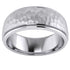This product is a men’s wedding ring made from Tungsten Carbide. It features a raised domed hammered center with polished sides.