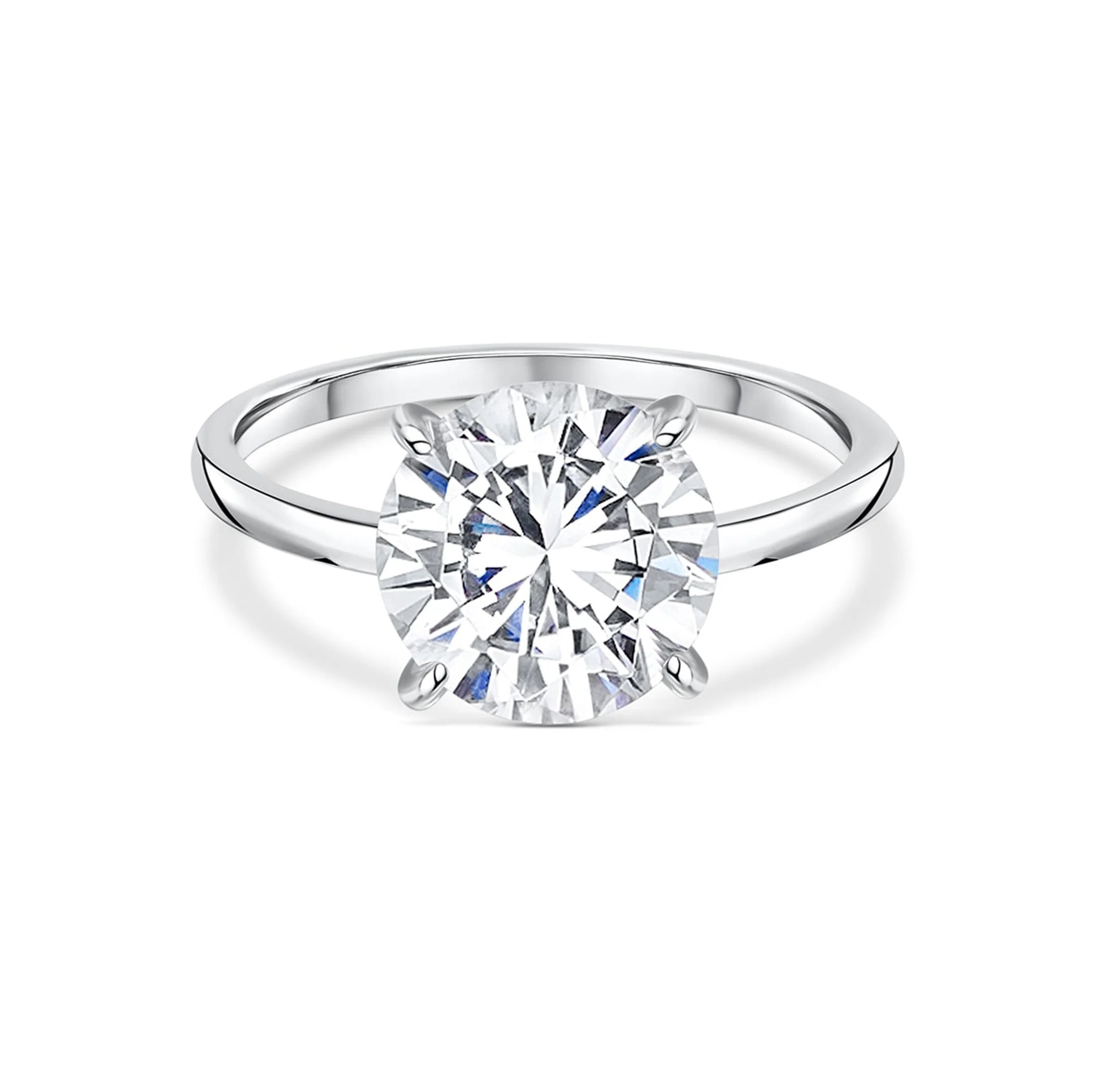 The pinnacle boasts a classic 3-carat conflict-free simulated diamond, but the real magic is tucked beneath – a dazzling hidden halo that adds a touch of elegance to this mesmerizing engagement ring. If you crave simplicity with a hint of allure, this ring is your dream come true!